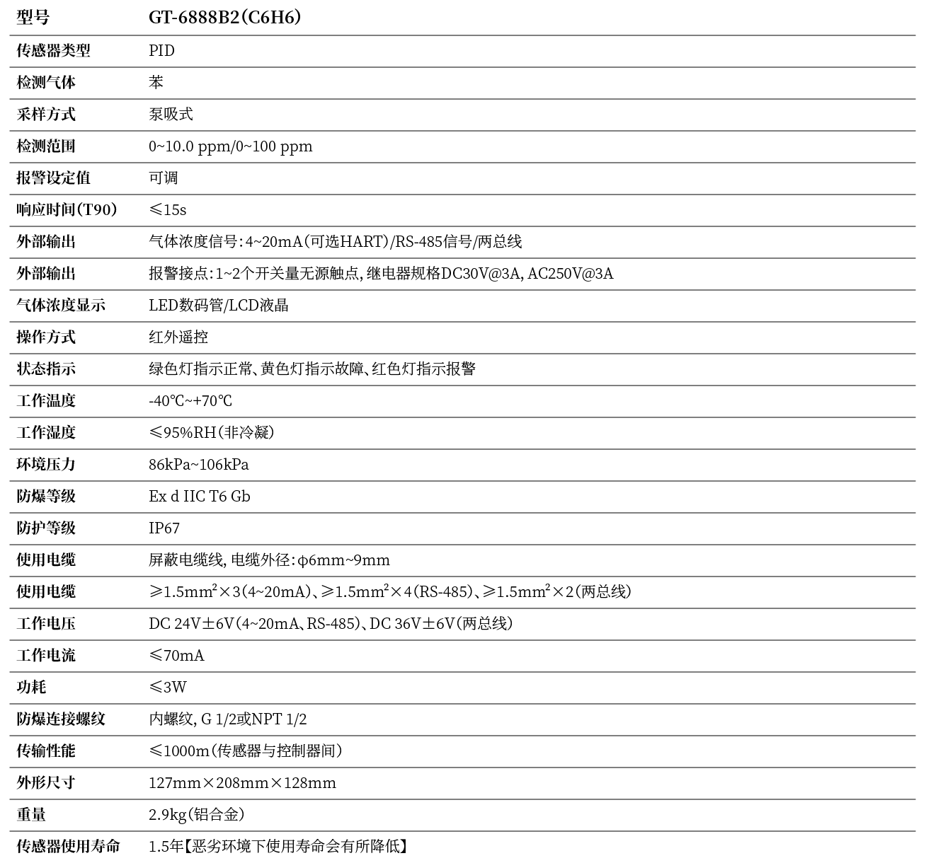 ·防爆等级 Ex d IIC T6 Gb